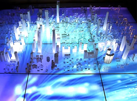 融合了多項多媒體技術突破了模型的局限,將投影影像精確投影到實體模型的相應位置,與實體沙盤互動展示的演示相映成輝,使沙盤的演示效果更加形象、生動。